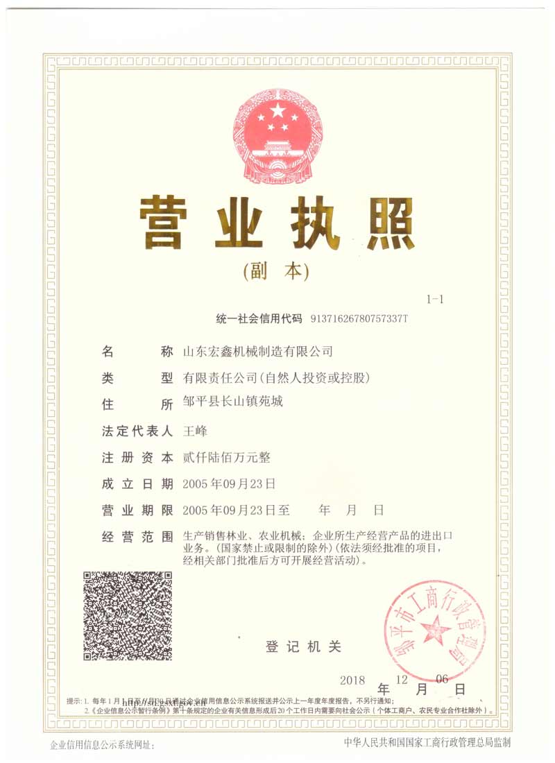 山東宏鑫機械制造有限公司系國家高新技術企業、山東省出口名牌企業、山東省農業科技型企業、國內園林機械行業的龍頭企業。公司創辦15年來,一直專注于園林綠化機械的研制開發、生產銷售,具有較強的專業性。公司在全國設有30多個銷售辦事處,70%的產品自營出口到澳大利亞及歐盟各國,是國內唯一一家以自主品牌打入歐洲市場的園林機械公司。